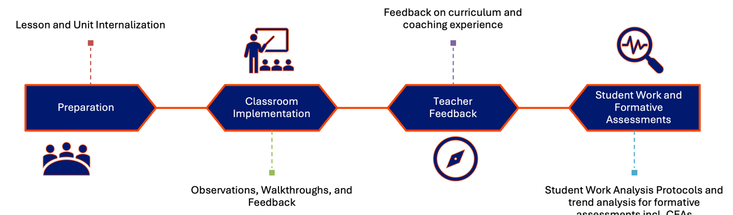 We partner with state and local education agencies to build leadership capacity for instructional improvement aligned to HQIM. Our work supports leaders in clarifying instructional priorities, strengthening observation and feedback systems, and aligning professional learning to ensure high‑quality materials are used effectively in classrooms.